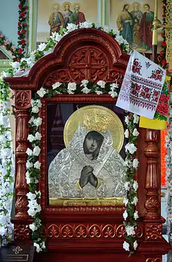 The Theotokos of Buchyn is an icon which allegedly appeared in the 18th century[1] and honored as miraculous by the Orthodox Christians of Volyn, Rivne (Ukraine), and Pinsk (Belarus) Polesye. The icon measures 65x80 cm.