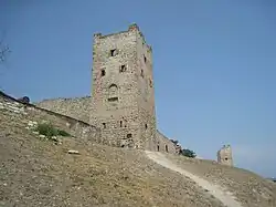 The two states' commercial rivalry led to the so-called "War of Curzola" in 1296–1299, which ended in the Treaty of Milan without a clear victor: Genoa retained her ascendancy in the Black Sea but was unable to completely exclude the Venetians from it.[10][11] During the war, the Venetians had operated in the Black Sea, and even sacked the Genoese colony of Pera (Galata), which then lacked fortifications;[12] but Venetian efforts to establish themselves in the region had come relatively late, and eventually led to clashes with the pre-existing Genoese commercial colonies, as happened in Trebizond in 1327–1328 and in Tanais in 1341, before all Italian merchants were expelled in 1343 by the Golden Horde under Khan Jani Beg.[13] The Venetians could count, up to that moment, on a strong commercial presence in the Crimea in the city of Soldaia, which, however, in the first half of the fourteenth century, was struggling to survive due to ruthless competition with the Genoese merchants in Caffa.[14] The Golden Horde's attacks on Caffa from 1344 on caused a brief rapprochement: both states imposed an embargo on the Horde, and Venetians were allowed access to Caffa. In 1346, however, the Venetians negotiated renewed access to Tanais for themselves alone, provoking the ire of the Genoese merchants in Caffa, who engaged in reprisals against their Venetian rivals.[15] The Venetian Senate immediately prohibited its merchants from entering the Black Sea, and declined a Genoese demand to restore access for Venetian merchants to Caffa, provided they stopped trading with Tanais.[16]