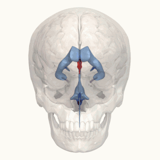 The anterior wall of the ventricle forms the lamina terminalis, within which the vascular organ monitors and regulates the osmotic concentration of the blood; the cerebrum lies beyond the lamina, and causes it to have a slightly concave shape. The optic recess – marks the inferior end of the lamina terminalis, with the optic chiasm forming the immediately adjacent floor.