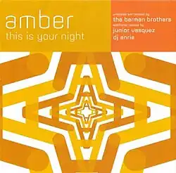 "This Is Your Night" is a song recorded by Dutch singer-songwriter Amber, released on 21 May 1996 by Tommy Boy Records as the lead single from her debut album of the same name (1996). It is written by Amber, and produced by German producers Berman Brothers and other programmers. In January 1996, a promotional version of this track was released to select Rhythmic Top 40/dance radio stations in New York and Chicago. This version, received minimal airplay before being replaced entirely with the now known "Original Edit", and was never released on any album or single. The music video for the song was directed by Jeff Kennedy and filmed in New York City.