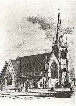 St Michael and All Angels, Neepsend, was consecrated in November 1867.[53] It was built for the Church Extension Society,[2] in an area with a background of severe flood, poverty, dirt and smoke, and was "therefore ... very plain in character". The nave was 90 ft (27 m) long, and 60 ft (18 m) wide, including the aisles, and contained seating for 1,000. The font, the carving and the heating apparatus were gifts from local worthies. The Illustrated London News said:[53]