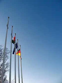 The flags of the European Union, the Federal Republic of Germany and Hungary are displayed in the Upper Yard.