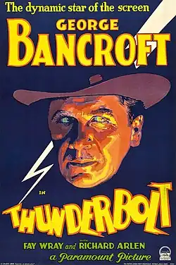 Thunderbolt (also released as At The Gates of Death) is a 1929 American pre-Code proto-noir film directed by Josef von Sternberg and starring George Bancroft, Fay Wray, Richard Arlen, Tully Marshall and Eugenie Besserer. It tells the story of a criminal, facing execution, who wants to kill the man in the next cell for being in love with his former girlfriend.