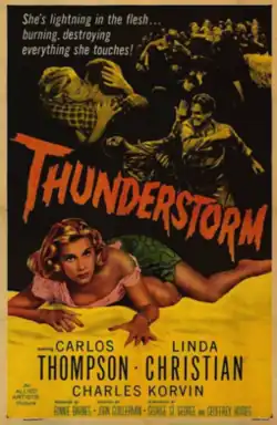 Thunderstorm (also known as Tormenta) is a 1956 British drama film directed by John Guillermin and starring Carlos Thompson, Linda Christian, and Charles Korvin.[2] It was made by British Lion Films.