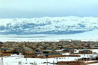 According to the Armenian MoD, the overnight situation along the front was relatively stable, but tense.[121] At approximately 09:00, the Azerbaijani MoD stated that Armenian forces were rocketing Tartar City and Horadiz.[122] At around 10:30, the Ministry stated that Armenian forces were shelling Fuzuli District, while rocketing Agdam and Tartar Districts,[123] while the Artsakh MoD stated that Azerbaijani forces were shelling Stepanakert.[124] Approximately half an hour later, Ganja came under bombardment.[125][126] The Armenian MoD denied that this came from its territory,[127] while Artsakh took responsibility, stating that Armenian forces had targeted and destroyed the Ganja military airbase on Ganja International Airport;[128] Azerbaijan issued a denial.[129] Subsequently, both a correspondent reporting from the scene for a Russian media outlet and the airport director denied that the airport, which was not operational since March due to the COVID-19 pandemic, had been shelled.[130][131] At approximately 14:00, Azerbaijan stated that Azerbaijani forces had severely wounded the President of Artsakh during a visit to the front;[132][133] Artsakh issued a denial.[134] At around 16:00, the Azerbaijani MoD stated that the Armenian forces were shelling Sarıcalı in Aghjabadi, several settlements in Agdam District, and Şahvəlilər in Barda Districts.[135] Approximately 40 minutes later, Azerbaijani President Aliyev stated that Azerbaijani forces had taken control of the city of Jabrayil,[136] as well as several settlements in Jabrayil District.[137] At around 17:80, the Armenian MoD released footage apparently showing Azerbaijani soldiers leaving Mataghis.[138] At approximately 22:40, the Azerbaijani MoD stated that Armenian forces had rocketed Tartar City and Mingachevir,[139] the latter housing a water reservoir,[140] which Azerbaijan reported that Armenia regards as a military target;[141][142][143] both Armenia and Artsakh issued denials.[144] Around an hour later, the Azerbaijani authorities stated that Armenian forces had fired two medium-range missiles at Khizi and Absheron Districts.[145]