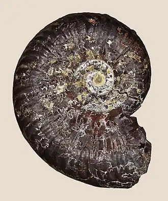 The ammonite species having evolved quite rapidly, they are used as a geological marker for the terrains that bears them. The Toarcian stage is divided in 34 elementary units or "horizons". Each horizon correspond to a period of approximately 260 000 years, and is characterized by one or several specific ammonite species.[6]