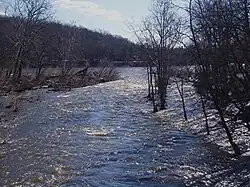 Tohickon Creek flowing out of the dam forming Lake Nockamixon.