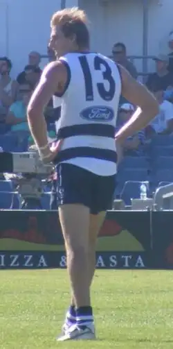 During the 2014 AFL trade period, Lonergan was offered a three-year contract to join the Western Bulldogs, in a deal estimated to be worth $500,000 a season.[17] Lonergan, who was already contracted to Geelong for 2015,[17] ultimately rejected the offer, citing loyalty to his teammates and the resignation of the Western Bulldogs' coach Brendan McCartney as his main reasons for remaining with the club.[18] He continued to play for Geelong through the 2016 and 2017 seasons. Lonergan played the final game of his career in the 2017 Preliminary Final, where he collected 10 disposals in a heavy loss to Adelaide.
