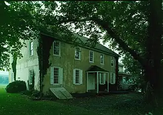 This historic residence was built in three phases. The oldest section dates to 1796, with additions made during the early nineteenth century and in 1950. The main house was built during the first two phases and is a 2+12-story, five-bay, random fieldstone structure that is coated in stucco. It has a gable roof and a brick chimney at the west gable end. The 1950 addition is a 2+12-story structure attached at the east end. Also located on the property is a stone springhouse that dates to the early eighteenth century.[2]