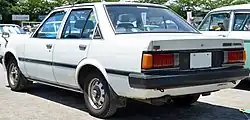 In its third incarnation, the Carina followed the fashion of the time with a still more angular overall look and four square headlights.[20] The Coupé was no longer a hardtop and was updated with halogen rectangular headlights, which were also installed on the Carina Surf (wagon) and were used in export, while the Carina Van received twin, round headlamps set in a black plastic surround.[1][21] The car followed its predecessors in retaining a front-engine rear-wheel-drive configuration even though by then competitor manufacturers were following a trend of switching to front-wheel drive in this class. The third generation was first released two months after the related Celica, in September 1981, and was the last Carina to use rear-wheel drive.[22] More precise rack and pinion steering replaced the recirculating ball used in previous generations; the A60 Carina used a MacPherson struts up front and a five-link, solid rear axle – except for the more powerful, fuel injected versions which have independent (semi-trailing arm) suspension at the rear.[1] The RWD Corona shared its chassis with this vehicle, when it was updated the succeeding year. The Carina was famously used by private teams racing for Japan in the Dakar Rally in the two-wheel-drive class for both 1981 and 1982. The Carina managed to achieve four championships in the marathon class divisions.