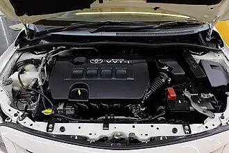 The Toyota 1ZR-FAE is a DOHC, 16-valve, 1.6 L (1,598 cc) engine equipped with both Dual VVT-i and the Valvematic lift system. Output for this engine is rated at 132 hp (98 kW) at 6400 rpm and 118 lb⋅ft (160 N⋅m) of torque at 4400 rpm for most applications. Compression ratio has been increased to 10.7:1, red line is at 6600 rpm. VVT-i varies the intake valve lift between 1 and 11 mm (0.039 and 0.433 in) according to load and RPM.[1][2]