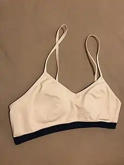 A training bra (also trainer bra, starter bra, or first bra) is a lightweight brassiere designed for people who have begun to develop breasts, at Tanner stage II and III. The training bra is intended to be worn during puberty when the breasts are not yet large enough to fit a standard-sized bra. Training bras often provide minimal or no support, and may serve aesthetic purposes to fulfill cultural norms and local beauty standards.
