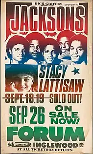 The Triumph Tour was a concert tour by the Jacksons, covering the United States and Canada from July 8 to September 26, 1981. The tour grossed a total of $5.5 million ($19 million in 2024), setting a record breaking four sold out concerts in Inglewood, California.[2]