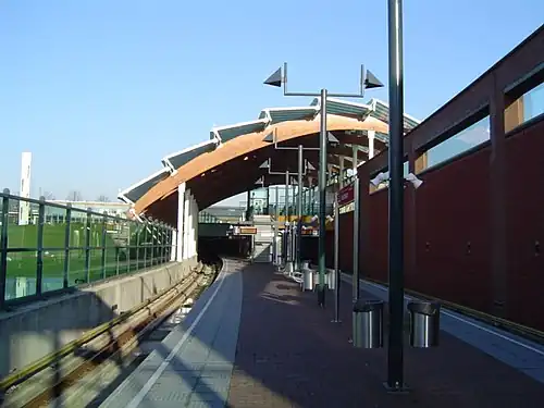 Troelstralaan is a metro station in Schiedam, situated on Rotterdam Metro line C. The station was opened on 4 November 2002 as part of the last major expansion of the Rotterdam metro. The main entrance, at the east end of the subway station, is located on the street named after P.J. Troelstra, and the island platform is accessible by entrances on both ends.