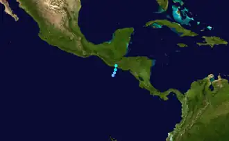 On the first advisory for Tropical Depression Two-E, the government of Guatemala issued a Tropical Storm warning for the entire coastline of Guatemala, from the Guatemala–Mexico border eastward to the El Salvador–Guatemala border. A tropical storm warning was also issued for the coast of El Salvador.[27] In Guatemala, nearly 1,500 shelters were opened for those affected by the storm.[28]