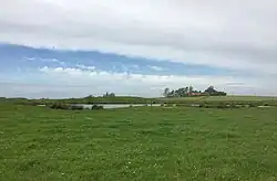 Around Ypres, some large craters remain near Hooge, as do several of the craters created by the mines in the Battle of Messines, including those at St Eloi (created by a charge of 95,600 pounds (43,400 kg) of ammonal), Maedelstede Farm (created by a charge of 94,000 pounds (43,000 kg) of ammonal), and at Spanbroekmolen (created by a charge of 91,000 pounds (41,000 kg) ammonal). When detonated on 7 June 1917, the blast at Spanbroekmolen formed the "Lone Tree Crater" with a diameter of 250 feet (76 m) and a depth of 40 feet (12 m).[50] The crater was acquired in 1929 by the Toc H foundation in Poperinge and is today recognized as the Pool of Peace memorial.[51][52]