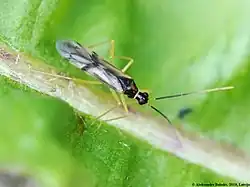 Tupiocoris rhododendri is a species of bugs in Miridae family that can be found in the United States,[1] and in European countries like Belgium, Germany, United Kingdom, and the Netherlands.[2] The species have black pronotum with brown wings and yellow legs.[3] The species feed exclusively on rhododendron.[1]