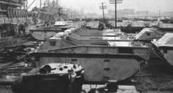 Tanks and landing equipment in New Zealand for the US Guadalcanal operation