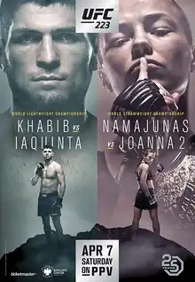 UFC 223: Khabib vs. Iaquinta was a mixed martial arts event produced by the Ultimate Fighting Championship that was held on April 7, 2018, at the Barclays Center in Brooklyn, New York.[3]