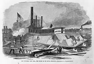 A contemporary illustration of the 1861 conversion of the steamer New Era into the gunboat USS Essex.