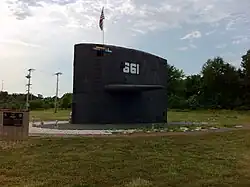 The sail was transported from Bremerton Washington to Springfield Missouri. Reassembly was in 2005 at Vietnam War Memorial Post 639 thanks to the work of Runner Base of USSVI. Most costs were donated by businesses and patriotic Americans. Five past commanders attended the dedication ceremony.