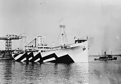 After her naval decommission, Santa Olivia entered merchant service on or before September 1919[19] as a cargo ship for W. R. Grace & Co., under the name SS Santa Olivia. For the next few years, the ship operated between New York and various ports in South America, including Rio de Janeiro, Brazil;[19] Valparaiso, Chile;[20] and Callao, Peru.[21] In August 1920, Santa Olivia collided with and sank a tug at Callao, with the freighter suffering minor damage.[22] In July–August 1922, Santa Olivia delivered 3,500 tons of grain to Reval (modern day Tallinn), Estonia, as part of a relief mission to famine-stricken regions of Russia.[23][24]