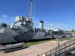 On 25 June 1974, Stewart and the Gato-class submarine Cavalla were donated by the U.S. Navy to the city of Galveston for use as part of the American Undersea Warfare Center at Seawolf Park. The municipal park is a memorial to the loss of USS Seawolf, SS-197 and Texans who died in World War II. The park is located on Pelican Island. Both vessels were placed, in their entirety, on land overlooking the city. In April 2024, Stewart underwent new painting to show her as the USS Samuel B. Roberts would have appeared during WW2.