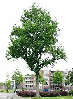 The hybrid elm cultivar Ulmus × hollandica 'Dampieri', one of a number of cultivars arising from the crossing of the Wych Elm U. glabra with a variety of Field Elm U. minor, is believed to have originated in continental Europe. It was marketed in Wetteren, Belgium, in 1851 as 'Orme de Dampier',[1] then in the Low Countries in 1853,[2] and later identified as Ulmus campestris var. nuda subvar. fastigiata Dampieri Hort., Vilv. by Wesmael (1862).[3][4]