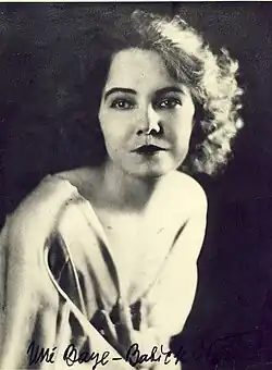 Unė Babickaitė-Graičiūnienė (born Uršulė Babickaitė also known as Une Baye; 19 April 1897 – 1 August 1961)[1] was a Lithuanian actress and theater director. During World War I, she attended the Saint Petersburg Conservatory. After the war, she staged several plays in Lithuania, but they were not well received by the critics. She then moved to the United States and appeared in several silent films. In 1924, she married Vytautas Andrius Graičiūnas. With his financial support, she organized theater plays in Paris and London. Babickaitė returned to Lithuania in 1936. After World War II, she was sentenced to five years in a Gulag.