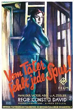 Under Suspicion (German title: Vom Täter fehlt jede Spur) is a 1928 German silent crime film directed by Constantin J. David and starring Hanni Weisse, Gritta Ley and Kurt Gerron.[1] After the owner of an amusement park if found murdered, police investigate the principal suspects.