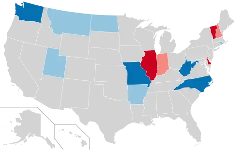 In the gubernatorial elections, the Democratic Party picked up one seat.