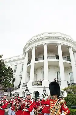 • Foreign heads of state and chiefs of government arriving at the White House are welcomed with the fanfare "Call to Statesmanship". At the conclusion of a state arrival ceremony, the President returns to the White House—generally entering either via the Blue Room or the Diplomatic Reception Room—to the fanfare "Presidential Processional".