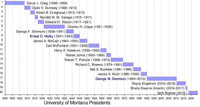 - ^ "University of Montana's Past Presidents". Archived from the original on December 29, 2010. Retrieved November 8, 2010.