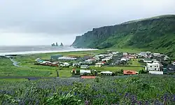 Despite its small size (750 inhabitants in Mýrdalshreppur as of January 2021[1]) it is the largest settlement for some 70 km (43 mi) around and is an important staging post. It is an important service center for both inhabitants and visitors to the coastal strip between Skógar and the west edge of the Mýrdalssandur glacial outwash plain.