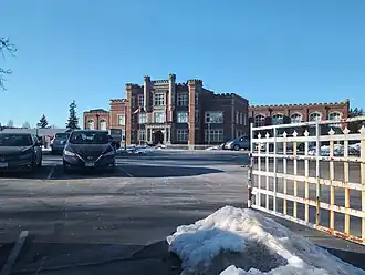 With a construction budget of $100,000, the facility - designed by architect Col. William Ridgeway Wilson - officially opened on September 13, 1913 as the Saanich Prison Farm to 38 inmates with room for 180 with the first prison warden, John Monroe, living on the grounds with his family. The prison primarily housed prisoners of war and offenders of the Naval Discipline Act during the First World War. There was at least one execution at the facility, with the most famous case being Robert Suttie who was hanged on January 15, 1915 for shooting and killing his foreman, Richard Hargreaves.[3] From 1919 until 1964, it operated as Colquitz Mental Hospital. In 1929, the site operated as a farm, producing 9000 eggs/week and a heard of 300 cattle until the Provincial Gaol Service and Parole Branch united to form the BC Corrections branch in 1970. The facility was then rebranded as the Vancouver Island Regional Correctional Center and reverted to its original use as a correctional centre. In 1981, the facility was recognized as a Canadian historic site.[4] In 1985, the facility completed a $24 Million dollar renovation, mostly focussing on the interior of the building, leaving nothing behind from the original but the heritage facade.[5][6]