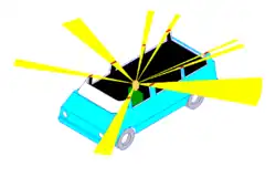 A vehicle blind spot or simply blind spot is an area around a vehicle that cannot be directly seen by the driver while at the controls, under existing circumstances.[1] In transport, driver visibility is the maximum distance at which the driver of a vehicle can see and identify prominent objects around the vehicle.[2] Visibility is primarily determined by weather conditions (see visibility) and by a vehicle's design.[3] The parts of a vehicle that influence visibility include the windshield, the dashboard and the pillars. Good driver visibility is essential to safe road traffic.