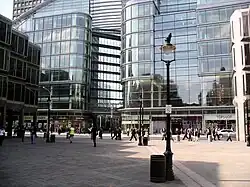 Victoria Street runs on an east–west axis from Victoria station to Broad Sanctuary at Westminster Abbey. Cardinal Place, across the street from Westminster Cathedral, opened in 2006 and contains a selection of restaurants, banks and shops, including a Marks and Spencer store. Further along the street, there is a large House of Fraser department store (formerly the Army & Navy) opposite Westminster City Hall. At the Broad Sanctuary end is the Department for Business, Energy and Industrial Strategy building, the headquarters of Transport for London at Windsor House, and the former New Scotland Yard building (headquarters of the Metropolitan Police Service from 1967 to 2016).