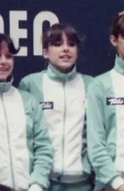 In 1980 she joined the Spanish national group, as third substitute, which will remain until 1983. She then trained in the Moscardó gymnasium under the head coach Emilia Boneva and the group coach Ana Roncero. Georgi Neykov was the choreographer of the team and Violeta Portaska was the pianist hired play the music for the routines.[1]