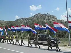 ![]() Soldiers raising the Flag of Croatia on Knin Fortress, 5 August 2011 | |