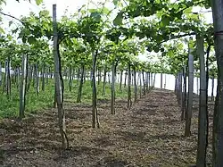 In the Basque Country, vines are commonly trained using a half-shoot system at a height of approximately 1.10 meters, along with long pruning techniques. Historically, vine heights ranged between 1.50 and 2 meters, particularly in vineyards located in the Pyrenean foothills.[8]