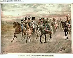 During the French invasion of Russia in 1812, there was a battle between the retreating French army (up to 37,000 troops) and the Russian army (25,000 men) near Vyazma on October 22, 1812. The vanguard of the Russian army under the command of Lieutenant General Mikhail Miloradovich and a Cossack unit of General Matvey Platov (coordinated by Miloradovich) attacked the rearguard corps of Marshal Louis-Nicolas Davout east of Vyazma and cut off his retreat. Owing to the intervention of Eugène de Beauharnais and Józef Poniatowski, Davout managed to break through the Russian army's encirclement.