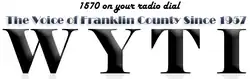 WYTI (1570 AM) is a Full Service formatted broadcast radio station licensed to Rocky Mount, Virginia, serving Rocky Mount and Franklin County, Virginia. WYTI is owned and operated by WYTI, Inc.[2]