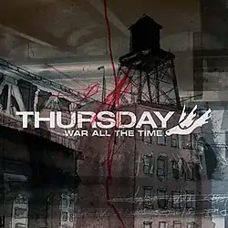 Keeley said that upon showing their label the album, he was unsure how they would react to it. He said that "for the most part it was a very positive" reaction.[22] On March 25, 2003, War All the Time was announced for release in August.[33] On April 28, "For the Workforce, Drowning" was released as a single;[34] around this, the band performed at Skate and Surf Fest.[35] In June and July, the group toured the US alongside Rival Schools, This Day Forward, Murder by Death and Every Time I Die. In addition, they performed at the Field Day and Hellfest festivals.[36] "For the Workforce, Drowning" was released on a split 7-inch vinyl record with "Under a Killing Moon" by Thrice on July 1.[37] Following this, the band took a two-week break, their first since November 2002, and then spent the next four weeks rehearsing.[4] "Signals Over the Air" was released to radio on August 12.[38] Having the song as a single, Rickly said he "like[d] the idea of a song about the exploitation of sexuality being on major media outlets like radio and television."[12] The music video for the track, released on August 28, was directed by Joakim Åhlund.[39][40] Initially announced for release on August 19,[33] the album's release was delayed so that the group could record new material.[24] War All the Time was eventually released on September 16 through Island Records.[41] It was previously made available for streaming nine days prior to release.[42] The UK version of the album was released through Mercury Records.[43] The Japanese version included a cover of Sigur Rós' "Ný batterí" (2000) as a bonus track.[44] Bassist Tim Payne said they were listening to that band's Ágætis byrjun (1999) album when he suggested Thursday should cover one of their songs.[9]