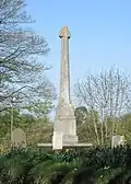 28 August 1919 | The memorial was a gift from Miss Catherine Mary Percival, of Chobham House, who commissioned the London Necropolis Company to erect the monument. It is 12 ft (3.7 m) high and carved from grey Forest of Dean stone.[41][42] | Grade II 1438598 |