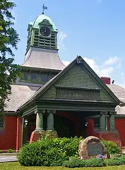 The Moffat Library, listed on the National Register of Historic Places, was built by Samuel Moffat's son David as a gift to his hometown