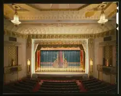 The theater is located at 305 Main Street, within the Anaconda Commercial Historic District. It was the last theater constructed in the United States in the Nuevo Deco (a form of Art Deco) style. The theater was designed in 1930 by Seattle architect B. Marcus Priteca. It was almost entirely finished by 1931, but its opening was delayed until Thursday, September 24,[2] 1936 because of the Great Depression. In 1936 dollars, its construction cost was a grand $200,000 (equivalent to $4,532,000 in 2024). The Smithsonian rates the Washoe as a national treasure due to the lavish interior. April 30, 1982, the Washoe was listed on the United States National Register of Historic Places for architectural significance.