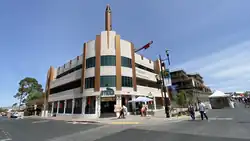 Henderson sought to remove businesses such as pawn shops and bail bond agents by 2003, as part of its redevelopment efforts.[28] A significant shopping demographic for the Water Street District would be the 8,000 workers in the nearby area, including city employees and those working at St. Rose Dominican Hospital. The city rezoned some nearby residential areas for possible future redevelopment, although this has yet to take place.[29][30][31] An art gallery opened on Water Street in 2003, and was the first of several to open over the next three years as the city sought to attract hipsters to the area.[16][32] Public art pieces such as murals were also added.[16][33][34]