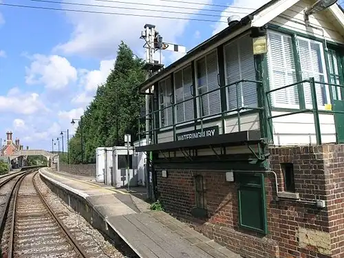 Wateringbury railway station is on the Medway Valley Line in Kent, England, serving the villages of Wateringbury and Nettlestead. It is 39 miles 77 chains (64.3 km) down the line from London Charing Cross via Paddock Wood and is situated between Yalding and East Farleigh. The station and all trains that call are operated by Southeastern.