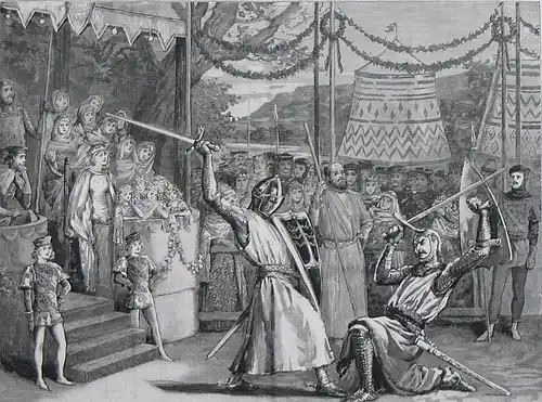 Illustration from The Graphic of Arthur Sullivan's operatic adaptation of Ivanhoe.