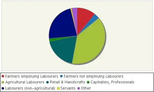Pie chart showing males aged 20 & over, in 9 occupational categories in 1831.[6]